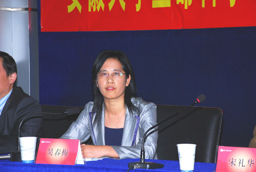 吳春梅副校長在講話中,對安科在短短數年間所取得的成就表示敬佩,對安科多年來對安徽大學給予的教學、科研、人才培養,特別是捐資助學等多方面的支持表示了由衷地感謝。