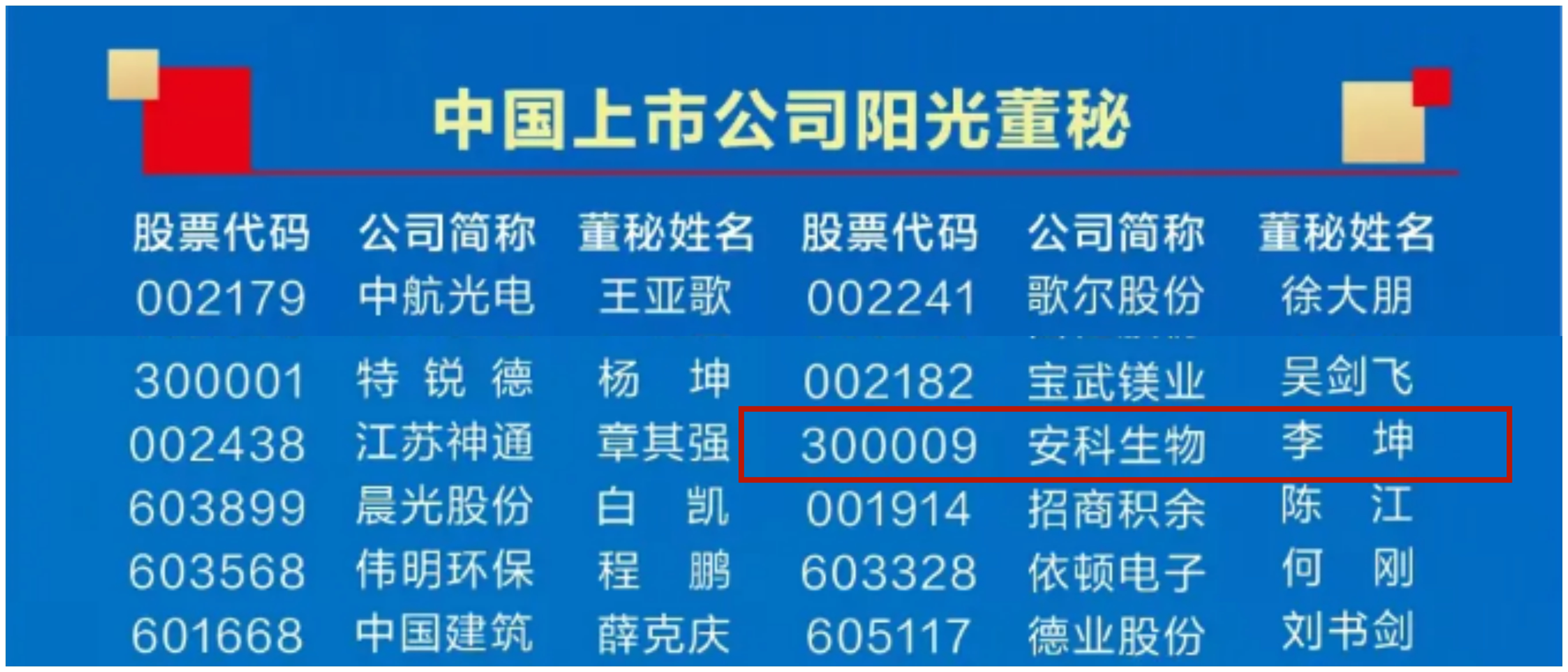 10月24日,由證券時報主辦的第十八屆中國上市公司價值評選獲獎名單揭曉,安徽安科生物工程(集團)股份有限公司(300009)再次成功入選“中國上市公司創業板價值50強”。公司董事、董事會秘書李坤也再次獲得“中國上市公司陽光董秘”榮譽稱號。此次榮譽的獲得,充分體現了資本市場及廣大媒體對安科生物經營管理、盈利水平、成長能力、信息披露質量和內部治理等多方面發展成效的高度認可,進一步彰顯了公司綜合競爭實力。