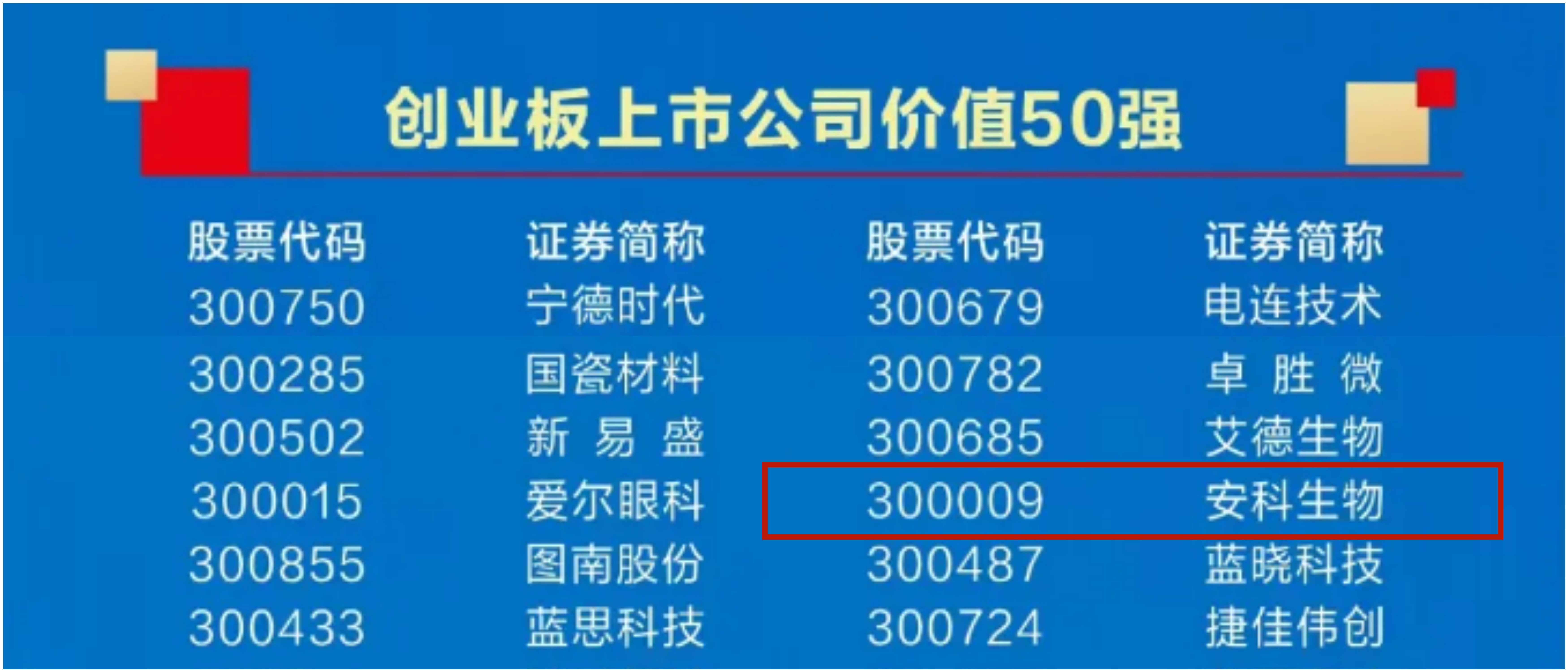 安科生物榮獲第十八屆中國上市公司價值評選創業板50強